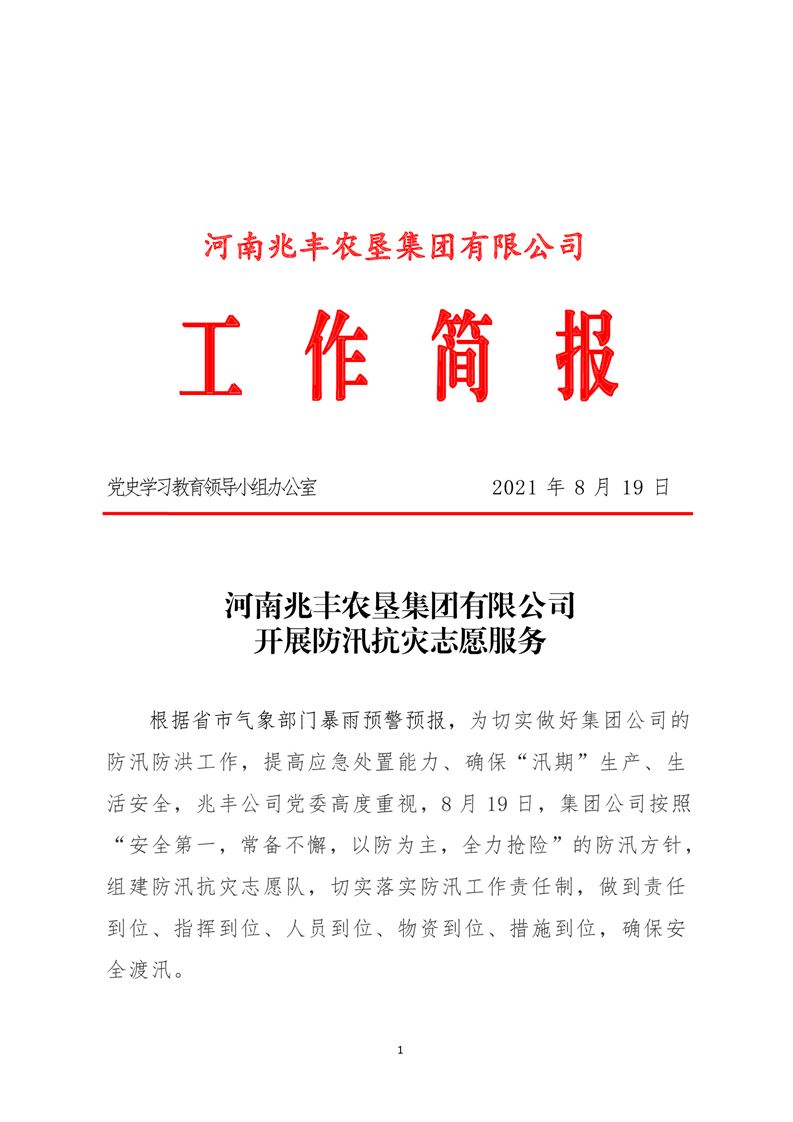 · 【我為職工辦實事】河南兆豐農墾集團有限公司 開展防汛抗災志愿服務