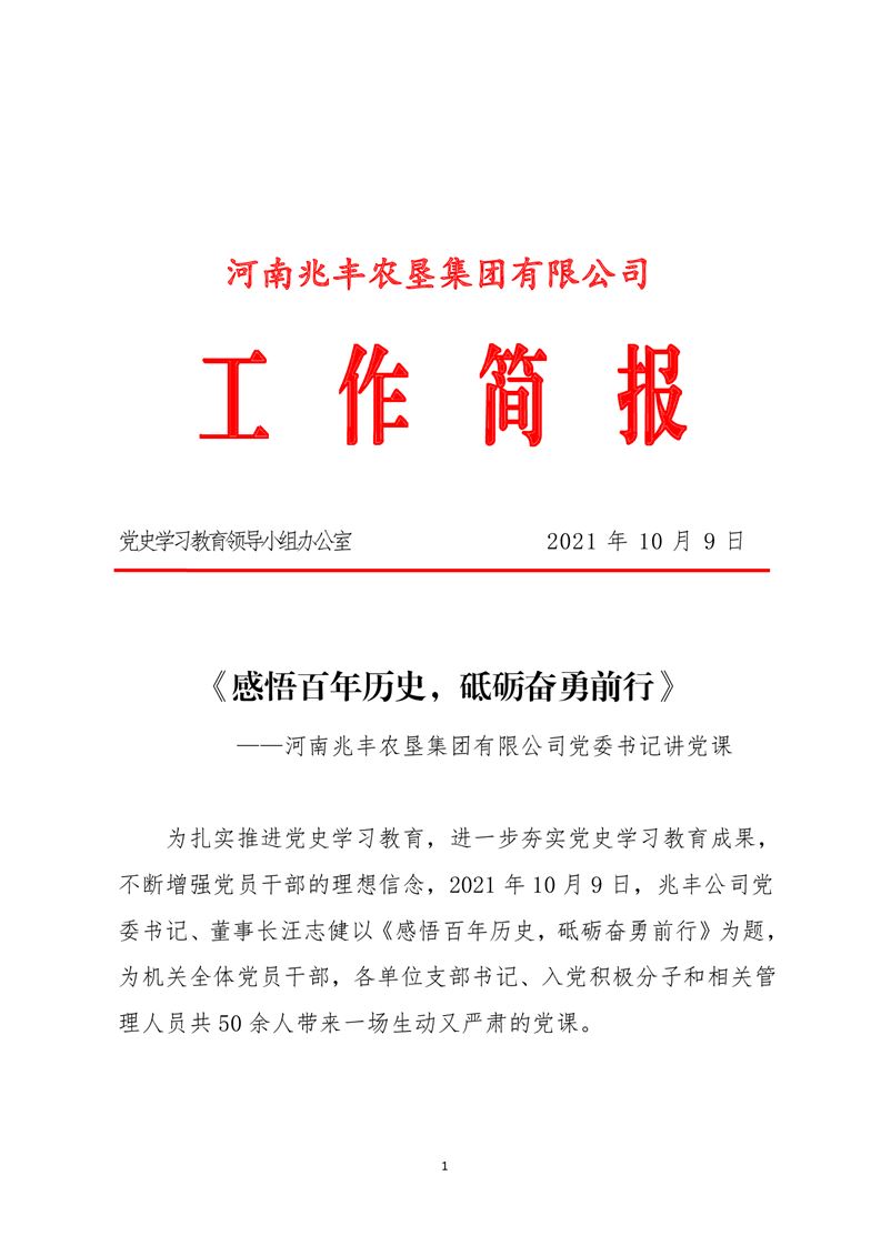 · 河南兆豐農(nóng)墾集團(tuán)有限公司黨委書記講黨課《感悟百年歷史,砥礪奮勇前行》