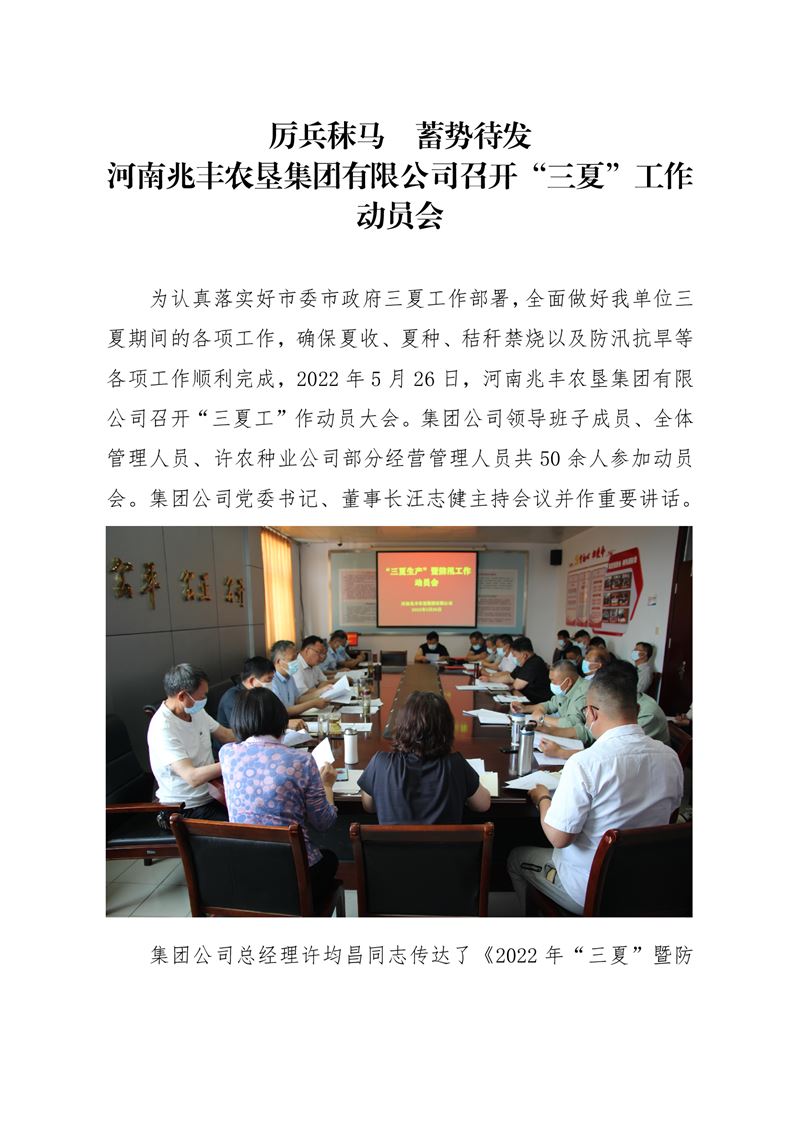 · 厲兵秣馬 蓄勢(shì)待發(fā) 河南兆豐農(nóng)墾集團(tuán)有限公司召開“三夏”工作動(dòng)員會(huì)