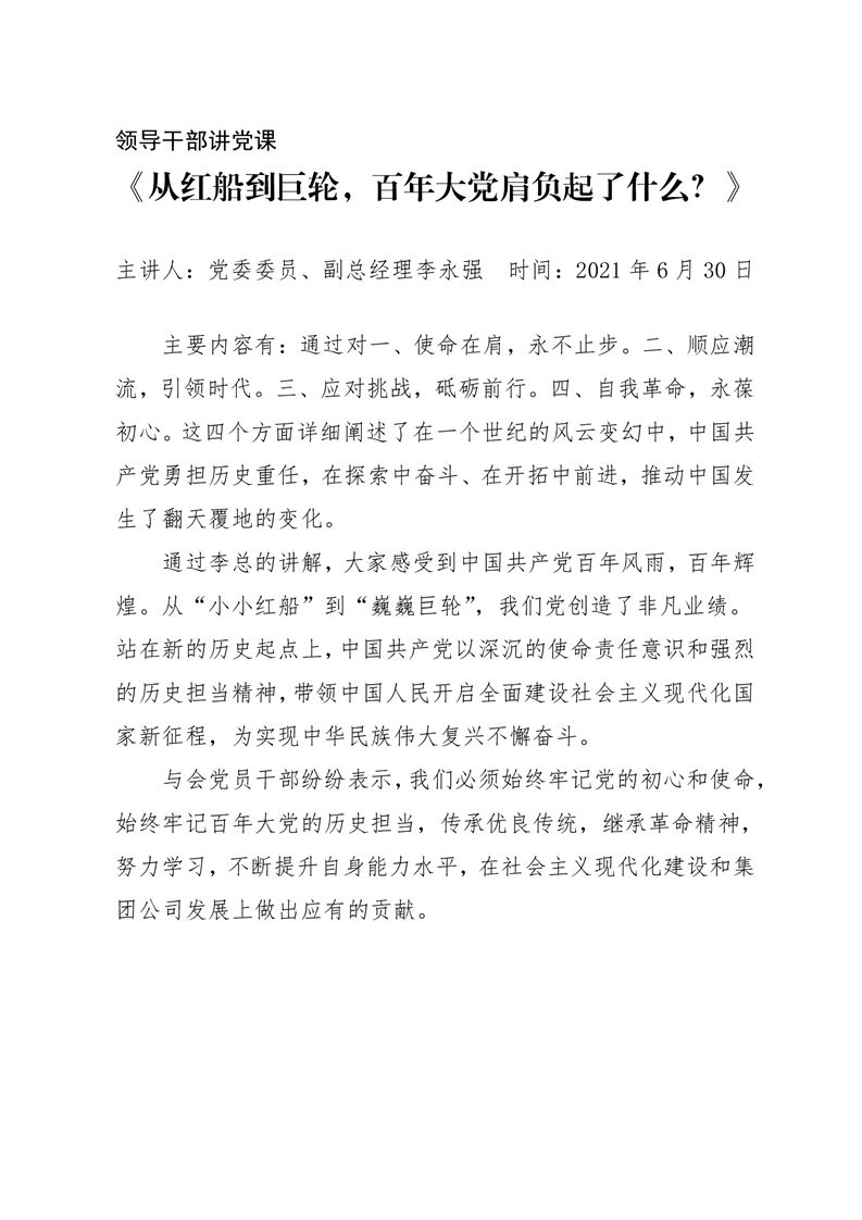 · 【領(lǐng)導(dǎo)干部講黨課】《從紅船到巨輪,百年大黨肩負(fù)起了什么?》——李永強