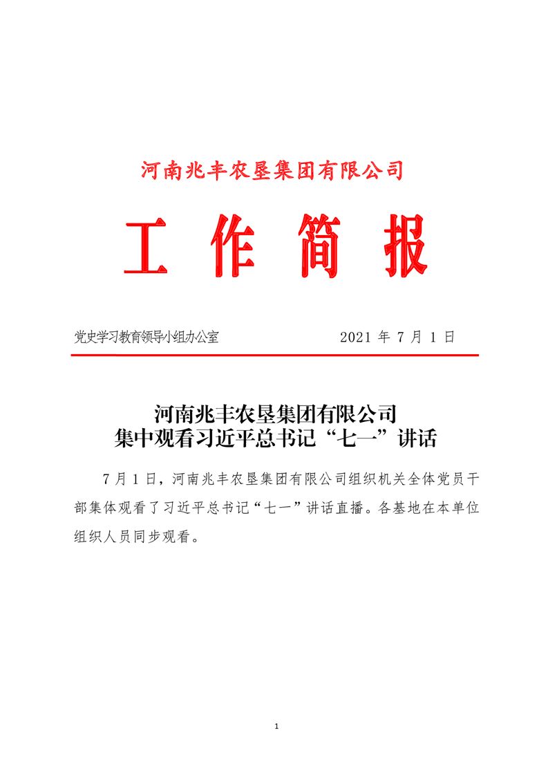 · 河南兆豐農(nóng)墾集團(tuán)有限公司 集中觀看習(xí)近平總書(shū)記“七一”講話