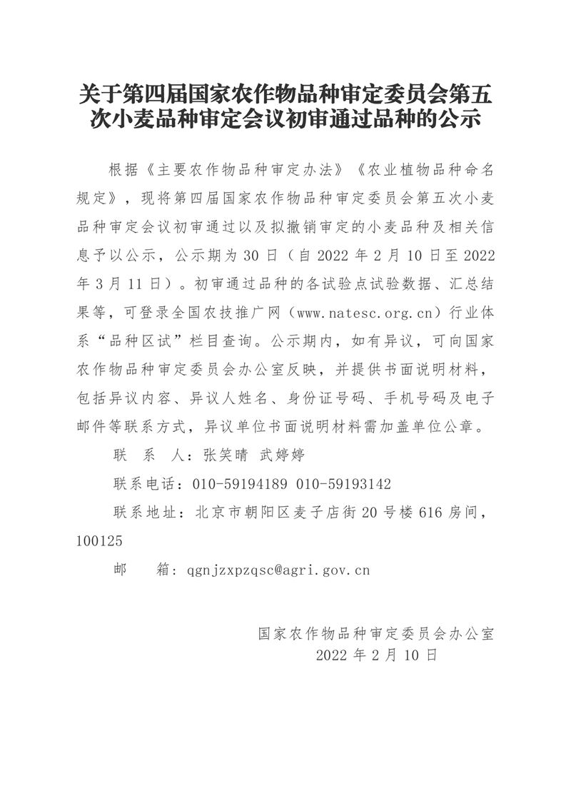 · 祝賀河南兆豐農墾集團有限公司 小麥品種兆豐3188、兆豐6號通過第四屆國家農作物品種審定委員會第五次小麥品種審定會議初審
