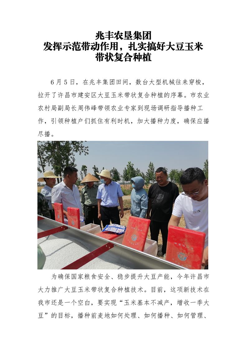 · 河南兆豐農(nóng)墾集團(tuán)有限公司 發(fā)揮示范帶動(dòng)作用,扎實(shí)搞好大豆玉米 帶狀復(fù)合種植