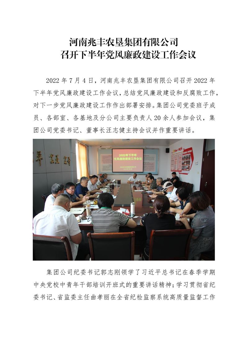 · 河南兆豐農墾集團有限公司 召開下半年黨風廉政建設工作會議