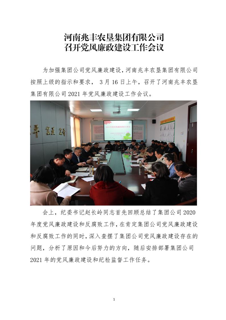 · 河南兆豐農(nóng)墾集團(tuán)有限公司 召開(kāi)黨風(fēng)廉政建設(shè)工作會(huì)議