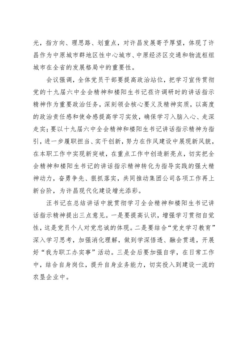 · 河南兆豐農墾集團有限公司 召開黨委擴大會 貫徹學習十九屆六中全會精神和省委書記樓陽生 蒞許調研講話指示精神