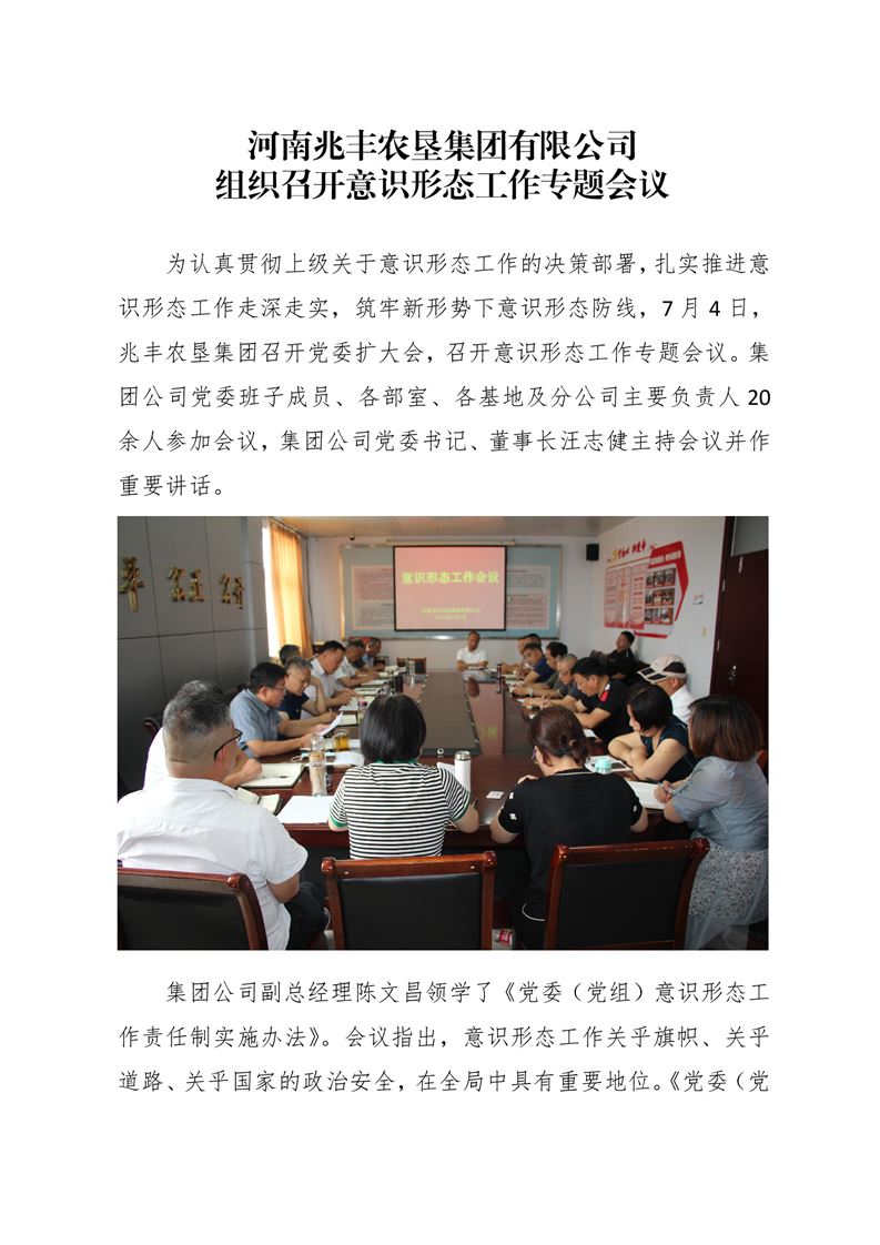 · 河南兆豐農墾集團有限公司 組織召開意識形態工作專題會議