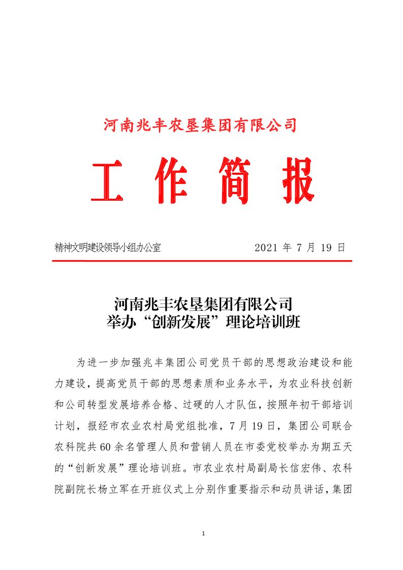 · 河南兆豐農墾集團有限公司 舉辦“創新發展”理論培訓班