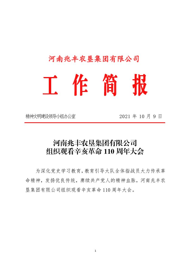 · 河南兆豐農墾集團有限公司 組織觀看辛亥革命110周年大會