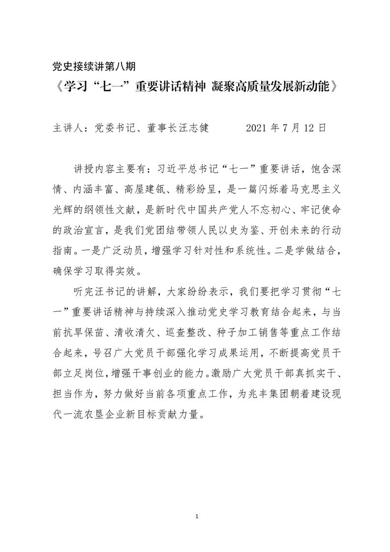 · 【黨史接續講第八期】《學習“七一”重要講話精神 凝聚高質量發展新動能》——汪志健