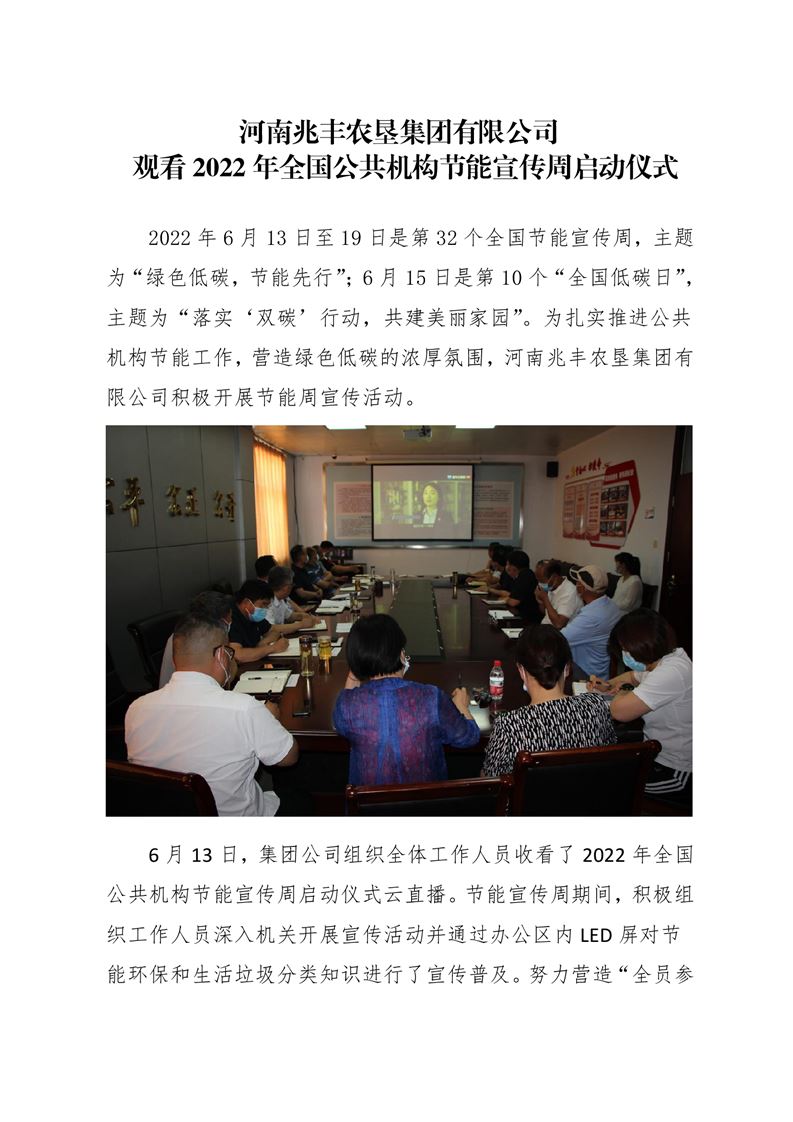 · 河南兆豐農墾集團有限公司 觀看2022年全國公共機構節能宣傳周啟動儀式
