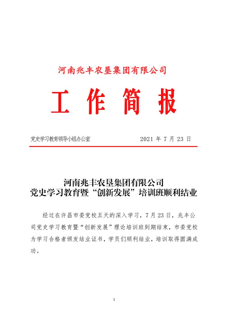· 河南兆豐農墾集團有限公司 黨史學習教育暨“創新發展”培訓班順利結業