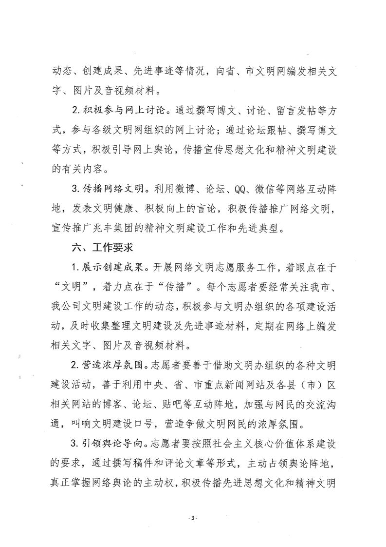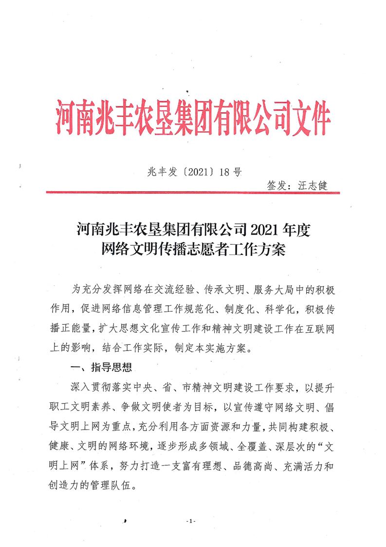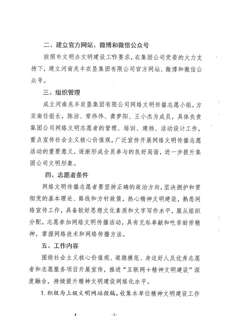 · 河南兆豐農墾集團有限公司 網絡文明傳播志愿者工作方案