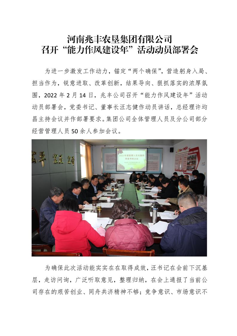 · 河南兆豐農(nóng)墾集團有限公司 召開“能力作風(fēng)建設(shè)年”活動動員部署會