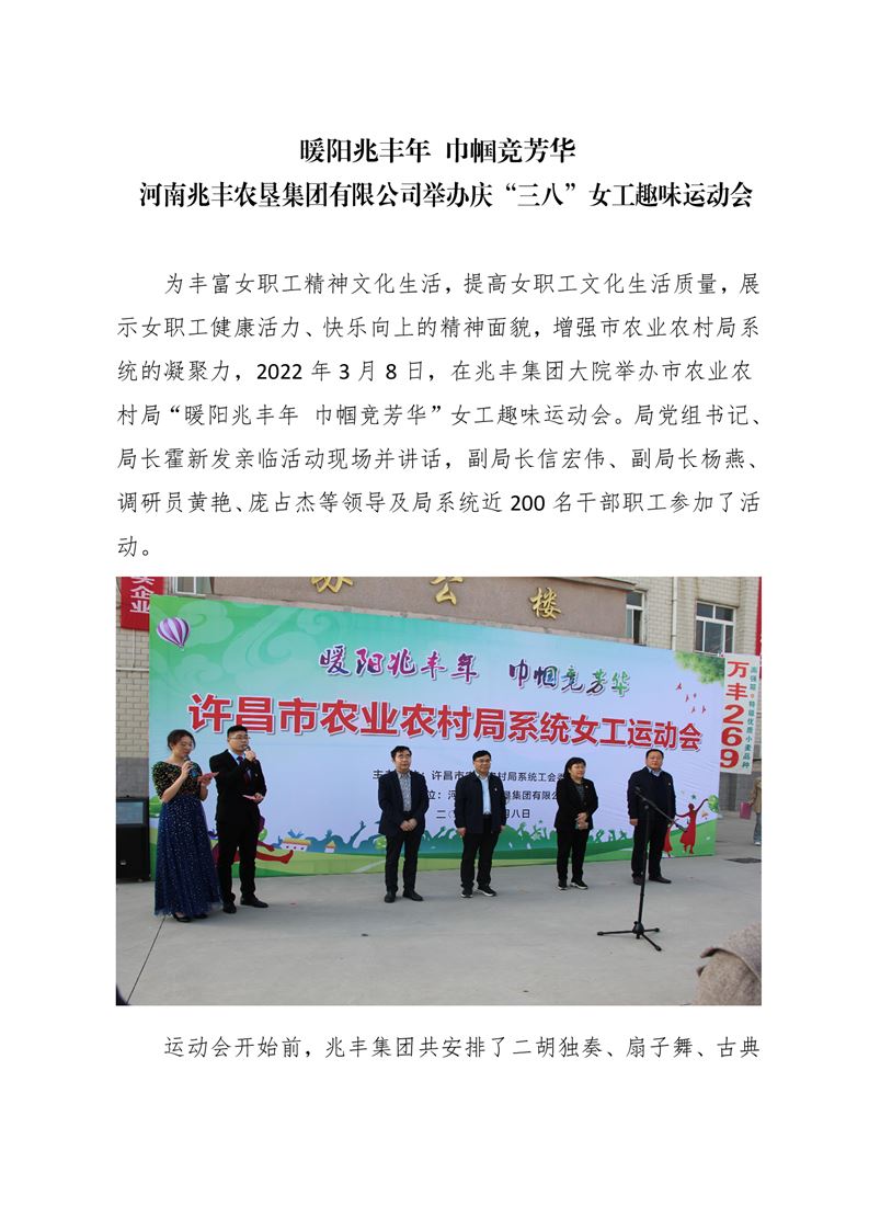 · 暖陽(yáng)兆豐年 巾幗競(jìng)芳華 河南兆豐農(nóng)墾集團(tuán)有限公司舉辦慶“三八”女工趣味運(yùn)動(dòng)會(huì)