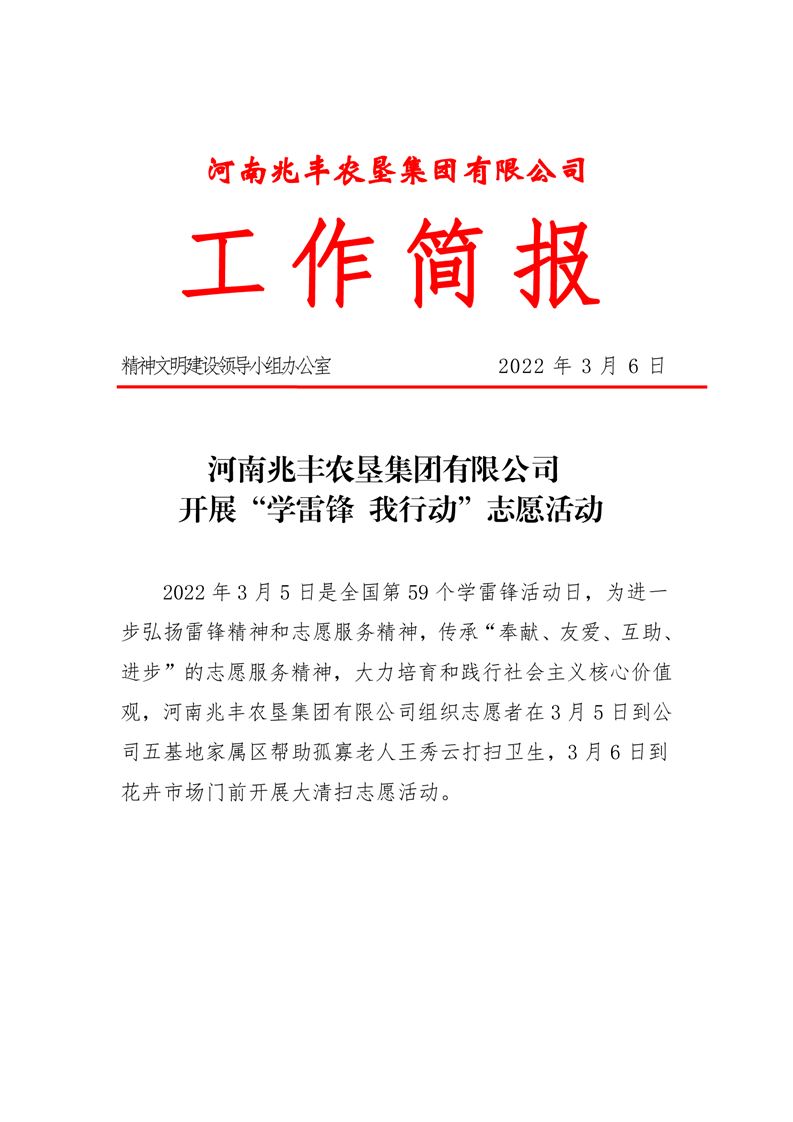 · 河南兆豐農(nóng)墾集團(tuán)有限公司 開展“學(xué)雷鋒 我行動(dòng)”志愿活動(dòng)