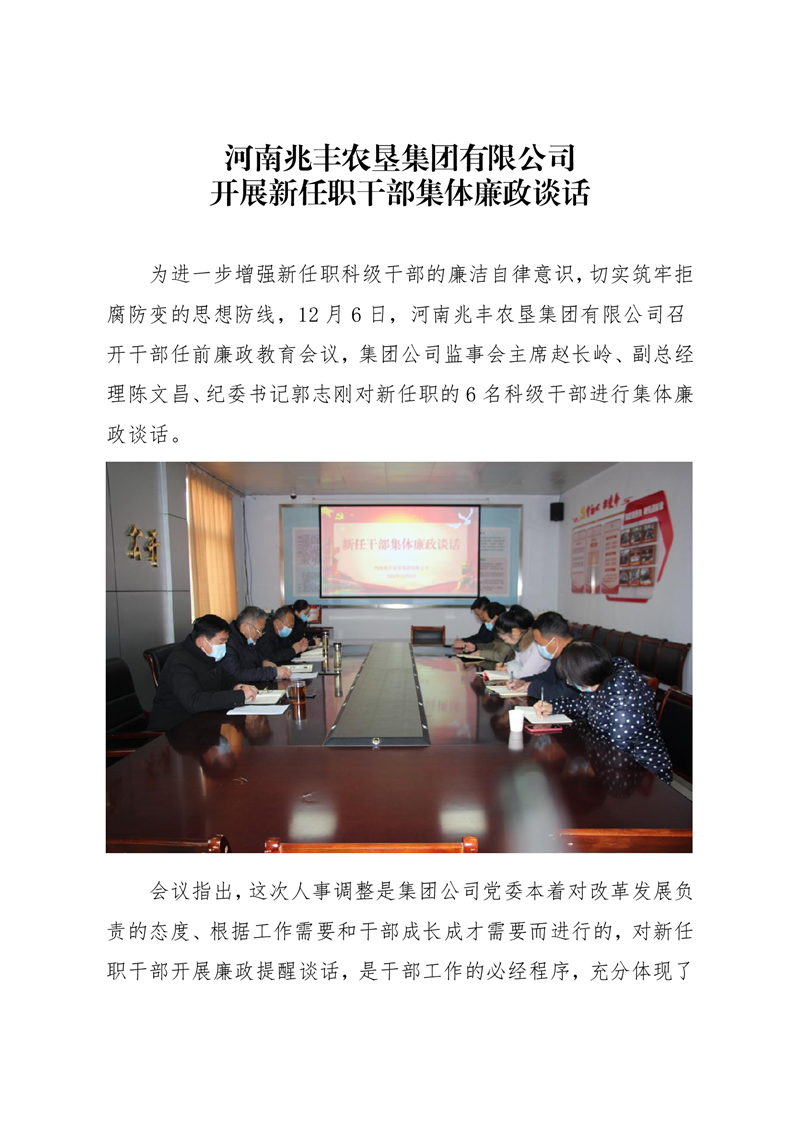 · 河南兆豐農墾集團有限公司 開展新任職干部集體廉政談話