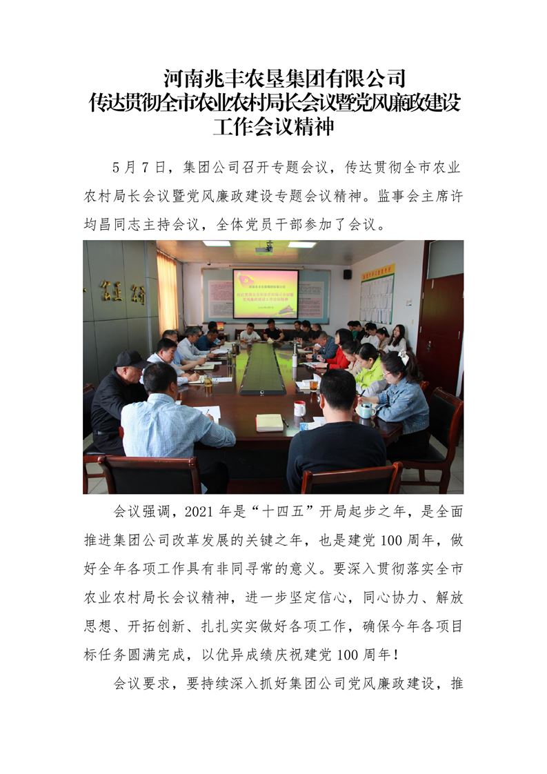 · 河南兆豐農墾集團有限公司 傳達貫徹全市農業農村局長會議暨黨風廉政建設工作會議精神