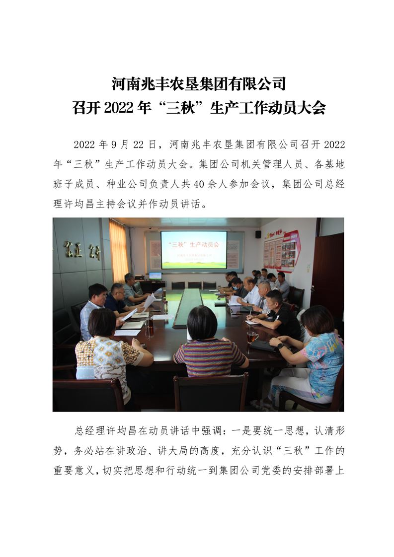 · 河南兆豐農墾集團有限公司 召開2022年“三秋”生產工作動員大會