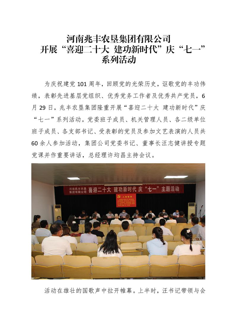 · 河南兆豐農墾集團有限公司 開展“喜迎二十大 建功新時代”慶“七一”系列活動
