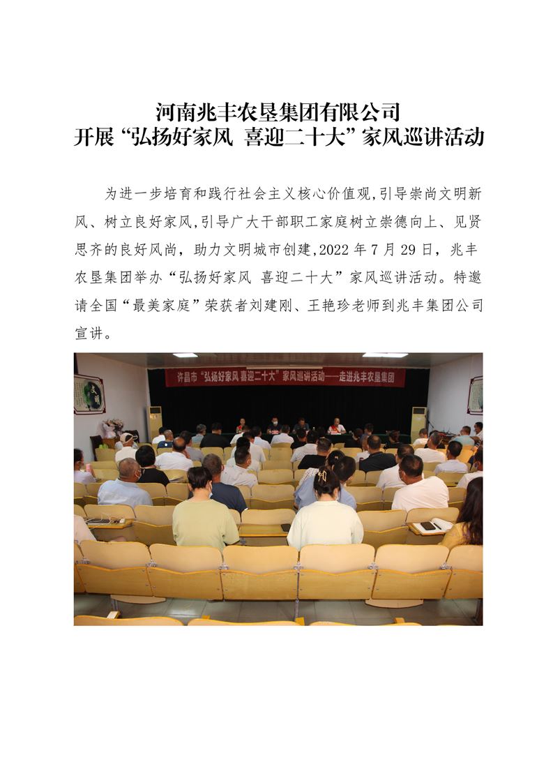 · 河南兆豐農(nóng)墾集團(tuán)有限公司 開(kāi)展“弘揚(yáng)好家風(fēng) 喜迎二十大”家風(fēng)巡講活動(dòng)